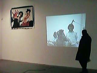 KH: Ms. Diane, you seemed disturbed by the overall rendering of women's bodies in this show. One sees in the photos (7 Cibachromes) a number of voluptous nude women in various seductive poses. DL: Actually, it was the same woman and this retro-sixties dude not so scantily clad...in addition to his layered psy-code-(de)lic posture was wearing sunglasses. It was the woman who had no clothes on, big breasts, a shaved pussy and a cowboy...